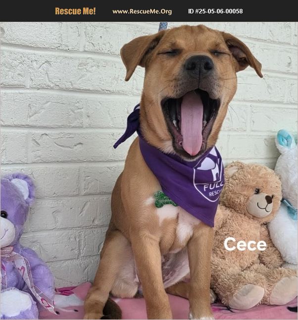 CeCe is friendly, playful, and always up for an adventure-especially if it involves treats or toys! She gets along great with other dogs and is wonderful with kids. While she may be a bit shy at first, her curiosity helps her warm up quickly to new people. Like most puppies, CeCe is still working on potty, leash, and crate training, but she's smart and food-motivated, so she's catching on fast. She loves playing with the resident dogs and kids in her foster home and enjoys snuggling up when it's time to wind down. CeCe's adoption fee is $150, with an additional $100 refundable spay deposit. Her adoption includes her spay certificate, age-appropriate vaccinations, a microchip, and parasite prevention. Visit www.fullcirclerescueandsanctuary.com to fill out an application.