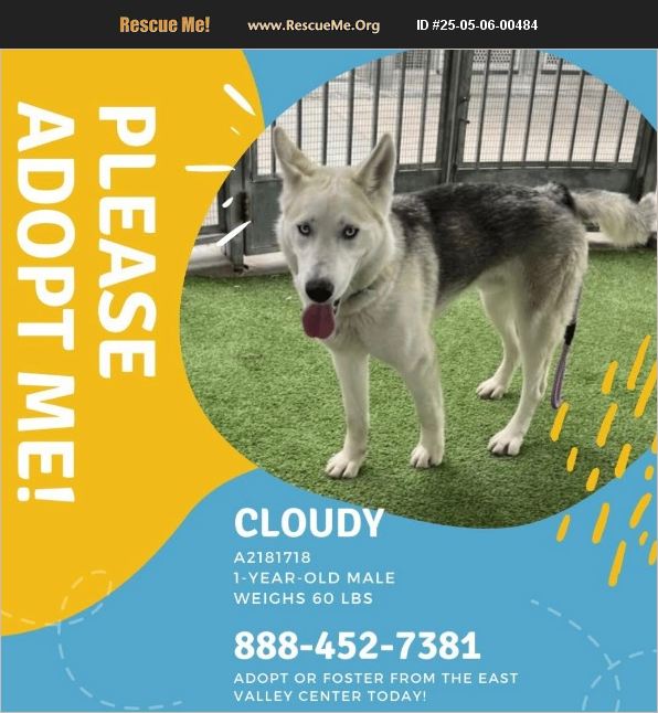 Meet Cloudy A2181718 who is available for adoption/foster at the East Valley Animal Shelter. Cloudy is a friendly guy that has become a volunteer favorite. He takes a little time to warm up to you, but once he does he becomes very affectionate and loves treats. He's a 60lb 1-year-old and would make a great hiking buddy. Cloudy: https://www.laanimalservices.com/pet/A2181718