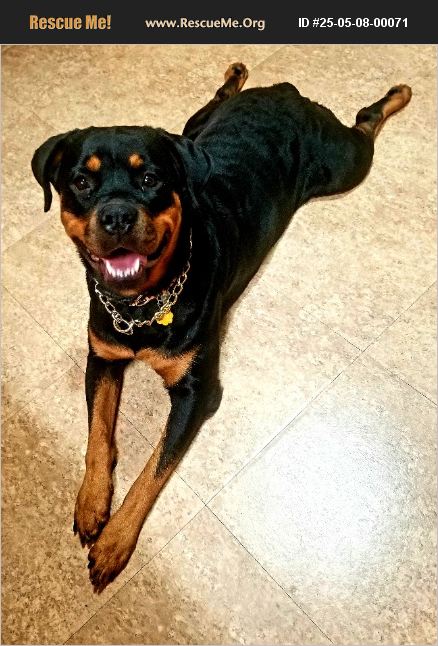 I'm writing to you today because I need assistance in finding a loving home for a dog. She is a 3 year old energetic Rottweiler that is up to date on her shots and heartworm negative. Due to unforeseen circumstances my brother, who adopted her, is no longer able to provide the care she needs.
