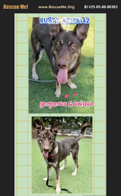 STILL at the shelter?!!! Rusty #A2186142 Videos: https://fb.watch/ztcJ0t7his/?mibextid=wwXIfr&fs=e https://www.facebook.com/reel/1392584968828475?fs=e&mibextid=wwXIfr&fs=e Sweet, affectionate, dog social and FUN! I met Rusty for the first time in April and thought that he was fantastic and would be adopted before I could make a video for him. I was wrong. So what gives? He's friendly and affectionate.Treat motivated so training will be straightforward and quick. Absolutely stunning and unique. Dog social. Playful and silly (don't you need to laugh more?). At 13 months old and 50lbs he's more than ready to be your wing man. He's ready to go home with you! Don't believe me? Come meet him and tell me I'm wrong. Lucy Ruiz Life Saving Liaison East Valley Animal Shelter 14409 Vanowen St Van Nuys Ca 91405 213-655-7613 [email protected]