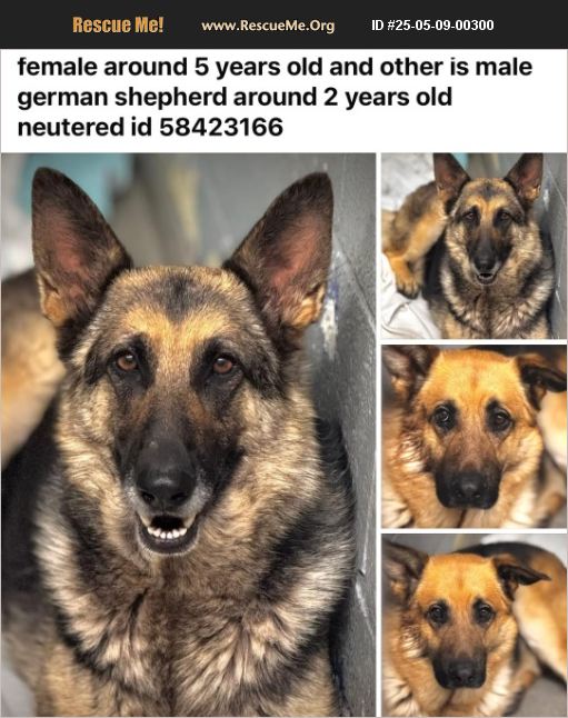 Female/Spayed German Shepherd 5 years Male/Neutered German Shepherd 2 years call/text christina leave voice message (eye doctor)