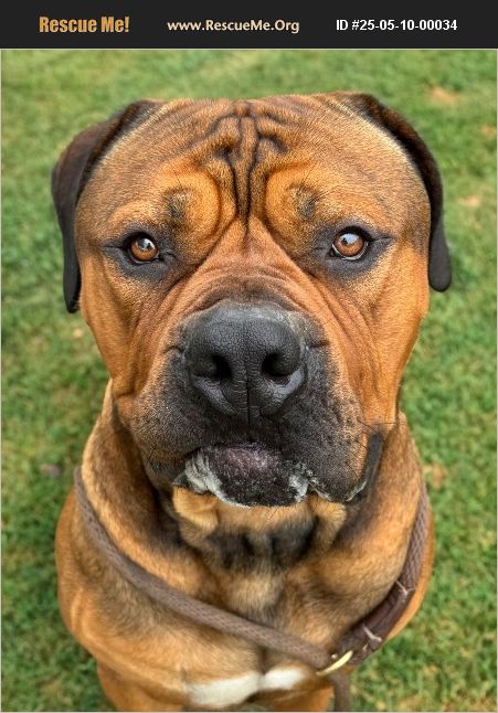 Beau is 125 lbs-a Bullmastiff-Boerboel (mix?) and needs an experienced person in XL strong breeds like his. He is very friendly and fairly cool when walking though the shelter-mostly ignoring other dogs. Previous owner reported he lived with kids ages 9 and 16, five cats, and a female dog (70 lbs, 1 year old, intact) with no issues. He is house and crated trained, lived indoors and outdoors in a fenced area. Beau has not transitioned to shelter life well. He is becoming increasingly anxious in his kennel and hard to handler due to his size and manners. He is rapidly declining.