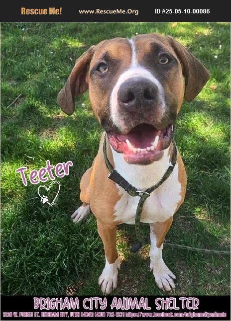 Meet Teeter! 11-month-old Pit/Boxer mix Unspayed female (Adoption fee $190 - includes spay voucher) Teeter is a beautiful, spirited young pup with a big personality and lots of love to give! She's great with cats, large dogs, and respectful kids. Fully potty trained, Teeter knows how to keep it clean indoors! BUT-this girl is not for the faint of heart! Escape artist (can climb, dig, and squeeze her way out!) Chewer/digger - will need something to keep her busy! No chickens, please Struggles with separation anxiety (she can chew through wire crates) *Not a fan of men* Teeter is searching for a patient, experienced preferably woman adopter, ideally someone home most of the time or who works from home. With consistency, training, and lots of love, she could thrive in the right home. Teeter's not perfect-but she's perfectly herself. If you're ready for a project with a heart of gold, she just might be your girl. Adoption fee: $190 (includes spay voucher) Apply today to meet Teeter! **All adoptions are upon approval of the adoption application only** Shelter Hours: Tues-Fri 12-6pm Brigham City Animal Shelter 1220 W Forest St, Brigham City, UT 84302 (435) 723-1231 https://www.facebook.com/brighamcityanimals *Disclaimer: This post was created by a shelter volunteer. For more details, please contact the Brigham City Animal Shelter directly. Your support is greatly appreciated!