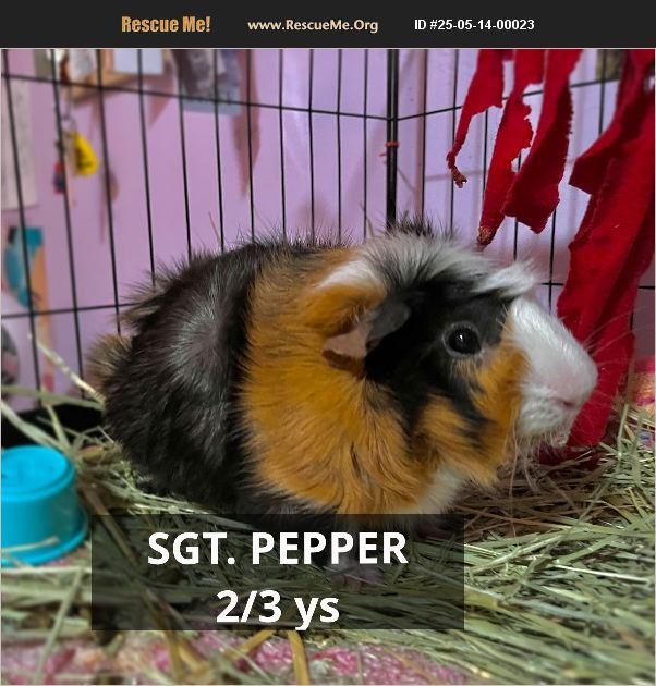 Sergeant Pepper is sick, possibly with pneumonia, and I cannot afford the funds for my local vet. There are no close vets, and I must move after this month. Pepper is sweet. He is skittish as a lot of guinea pigs are but will eat anything. Both edible and nonedible if it gets too close to his mouth. He's not picky, he curiousity-bites instead of nibbles but has never broken skin, and he is a little easier to pick up compared to my other guinea babies. He could use a good home and a chance to be free of illness. He is bonded with a very docile fixed female, Cumin, and can come with supplies.