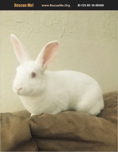 CHECK YOUR SPAM/JUNK FOLDER IF�%A0 DON'T RECEIVE A REPLY TO AN INQUIRY INDOOR ONLY HOMES Aniani is one of 25+ rabbits rescued from a neighborhood in the Inland Empire. She was one of the last to be rescued from an uncaring resident who allowed bunnies to breed and escape his backyard.. Aniani is a beautiful Hawaiian name appropriate for the beauty I see in this often overlooked type of rabbit--a REW--or red-eyes white. Aniani was scared upon arrival but within a few days she showed her trust by licking my hand profusely. She knew she was safe, loved and cared for. She always submits her head for pets when I pass by her bunny enclosure. Or, she will beg for treats. She is a docile, lovely rabbit who deserves a life in a real home, not a rescue home. Give this girl a chance to steal your heart and she'll provide you a lifetime of loyalty and bunny kisses. Her estimated date of birth is May 2024. Aniani should start out living in an exercise pen (x-pen) otherwise known as a puppy pen. She can have that as her home base or transition to a room or a section of a room or free roaming. A cage/hutch is not recommended unless the door is open and an x-pen can be placed around it. Please be over 21 if inquiring about a rabbit. Aniani can be seen by appointment in Lake Elsinore after a questionnaire is completed or a phone consultation conducted. On adoption day, plan to spend approximately one hour at the rescue going over paperwork and general rabbit care information.�%A0 PLEASE consult with the rescue before you purchase rabbit supplies so you can be directed to the least expensive and most appropriate rabbit essentials, especially if you've never had the pleasure of owning a rabbit! Your local big chain pet store is probably NOT the best place to buy rabbit supplies! If you have a spayed/neutered single bun searching for a friend, there are plenty of rescue rabbits here available for my signature rapid romance bunny bonding. Male/female bondings are usually recommended. See the following link for more information: https://rabbit.org/care/bonding BENEFITS OF ADOPTION FROM KRIBS FOR KRITTERS RABBIT RESCUE Delivery available to 100 miles Adoptions in Lake Elsinore by appointment Adoptions include mini ER kit Services offered: Boarding (24/7 care) Convalescent care. (24)7) Lifetime free grooming (trim nails/clean scent glands, comb/brush/dematting) Unparalleled rabbit education before you adopt Lifetime support after you adopt Starter hay and toys PLEASE WATCH TOP 10 MISTAKES RABBIT OWNERS MAKE! https://www.youtube.com/watch?v=c6IlJTgsQrU PLEASE WATCH TOP 10 REASONS NOT TO GET A BUNNY!: https://www.youtube.com/watch?v=TaoHFamRXYg THE BIGGEST MISTAKES YOU CAN MAKE AS A RABBIT OWNER: https://www.thedodo.com/things-to-know-getting-rabbit-1340963451.html A HUTCH IS NOT ENOUGH! https://www.youtube.com/watch?v=_vvlb-prX4I Kribs for Kritters Rabbit Rescue & Sanctuary Find Kribs for Kritters on: https://www.facebook.com/kribsforkrittersofficial/ https://www.instagram.com/kribs_for_kritters/ Our founder is a ONE PERSON, uncompensated volunteer, grass roots, boots-on-the-ground rescuer who exclusively rescues domestic rabbits that have been cruelly abandoned at parks, golf courses, schools, fitness trails, and other outdoor locations.