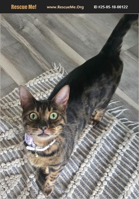 Beautiful Bengal with large rosette markings. Trained in or outdoors. Curious of everything. Good with kids. Will talk to you. She understands English.