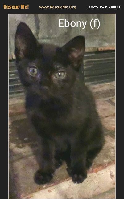 Ebony is one of three black kitties from a stray in Hesperia. They have been cared for by a kind resident. Look for sister Raven and�%A0brother, Sable. The adoption fee includes being spayed/neutered, treated for fleas and worms, current shots and being chipped.�%A0 We also pay for the initial chip registration.�%A0�%A0 Adoption events are held�%A0Sundays at the Fontana Petco 12-4pm https://petstablished.com/adoption_form/32024/generic