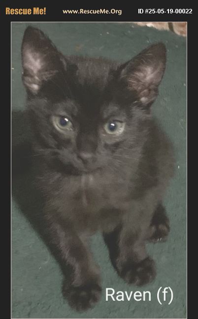 Raven is one of three black kitties from a stray in Hesperia. They have been cared for by a kind resident. Look for sister Ebony and�%A0brother, Sable. The adoption fee includes being spayed/neutered, treated for fleas and worms, current shots and being chipped.�%A0 We also pay for the initial chip registration.�%A0�%A0 Adoption events are held�%A0Sundays at the Fontana Petco 12-4pm https://petstablished.com/adoption_form/32024/generic