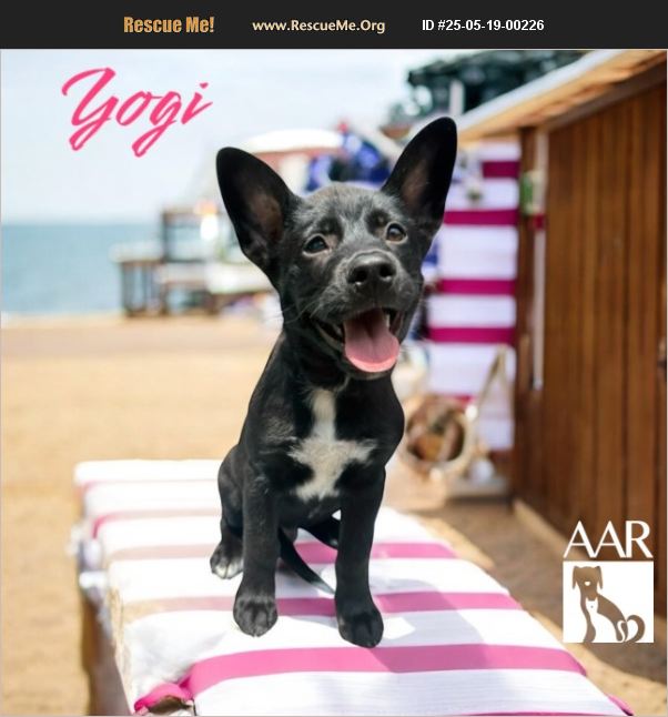 Yogi's foster mom has nothing but praise for this sweet little pup! Here's what she had to say about his playful personality, good manners, and lovable nature: Yogi is a fun-loving little boy filled with happy smiles and hugs. He loves big dogs, little dogs, the family cat, and uses the doggy door and magnetic screen easily. He comes when called, and is trained to use piddle pads indoors. He is leash trained (with a harness) and likes having his teeth brushed! This little guy is truly special. Est. DOB: 2/10/25 12 lbs. AAR does not transport for adoption.
