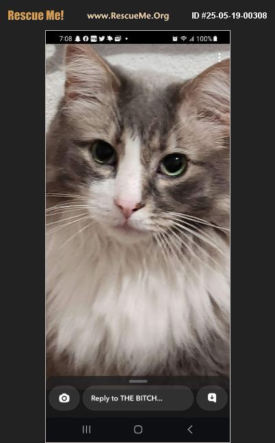 Maine Coon mix. Beautiful boy needs a new home promptly. His persin is no longer able to return home. Currently under the care of a neighbor.