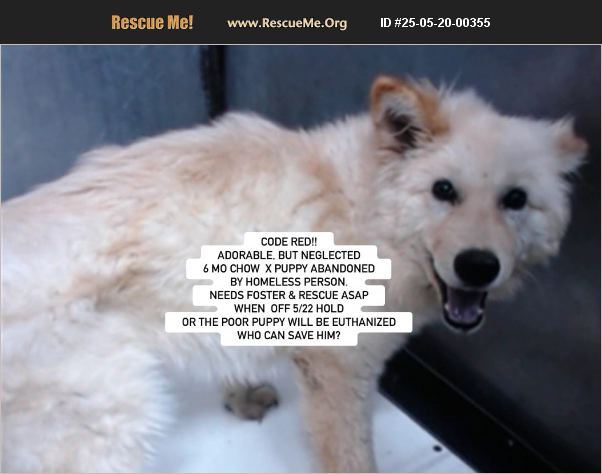 Courtesy Posting: CODE RED- DEVORE, CA, So Cal - SAN BERNARDINO COUNTY ANIMAL CARE - ID #A819414 WE ARE CALLING 'BENJAMIN'- ADORABLE, BUT NEGLECTED 6 MO CHOW X PUPPY ABANDONED BY HOMELESS PERSON- NEEDS FOSTER AND RESCUE ASAP WHEN OFF 5/22 HOLD- OR THE POOR PUPPY WILL BE EUTHANIZED Please help us find a savvy foster or foster to adopt- and rescue - asap before this young man is euthanized when off his hold on 5/22. Sadly, the shelter told us 'it was reported that the owner is homeless and left the dog with friends. While at the friends, a minor, was comforting the dog they were bit on their right hand.' Unfortunately, we do not have further information on the owner at this time. He will be in quarantine until 5/22 & will only be available to be pulled by rescue groups. I have copied his medical notes below. MEDICAL: 05/12/25 VETERINARY HOSPITAL: DISCOLORATION OF TONGUE AND WHEEZING. POSSIBLE KENNEL COUGH/ INTACT MALE/ ~ 6 MONTHS OLD/ MATTED HAIR ON REAR END/ TX: VET ADMINISTERED TORBUGESIC 10MG/ML INJECTION AND A DEXAMETHASONE 2MG/ML INJECTION. IF NO IMPROVEMENT, RECOMMEND XRAYS AND CBC/CHEM. RX: DOXYCYCLINE 100MG BID X 14 DAYS AND TEMARIL P 2 TABS BID X 5 DAYS. 05/13/25 DOG HAS RR 44 AND IS NOT CYANOTIC OR DYSPNEIC. DOG IS UNDERWEIGHT AND QAR. WILL CONTINUE TO ADMINISTER MEDS AS PRESCRIBED AND MONITOR. 05/15/25 DOG IS BAR/ EATING AND DRINKING WNL. RESPIRATORY RATE WNL. WILL CONTINUE MEDICATIONS AS PRESCRIBED.' Therefore, we are desperately looking for a savvy foster and/or rescue to save this puppy in time. Since most rescue groups need a foster to save this puppy. If you are interested in fostering, or fostering to adopt, please contact [email protected] asap or Southern California Chow Chow Rescue Network who is trying to assist with finding placement. We can try to pair fosters with a willing rescue to help. His listing link is: https://24petconnect.com/DetailsMain/SBCO1/A819414 For rescue inquiries, please contact the shelter asap at (909) 386-9820 and provide his ID, and also email: [email protected] We will also be posting updates, additional pictures and videos on facebook: https://www.facebook.com/783968124/posts/10167110799908125/?mibextid=wwXIfr Note: to view contents of links you will need to copy and paste each one separately into your browser.