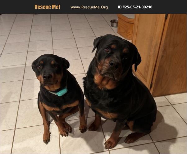 They have been raised together since pups. We are needing to rehome them due to owners death. They are presently still at their home but the house will be going on the market next month. They are 4 year old bonded 1/2 brother and sister. KC is the male and hasn't been fixed. Sadie is the smaller female and has been fixed. They are pure bred Rottweilers but no papers. They are super sweet, well behaved and very lovable. Love to give gentle hugs. Mom loved to feed them from a spoon every morning. Mom and Dad were using walkers and these two knew how to behave around them. With a little training they might be great at a nursing home.