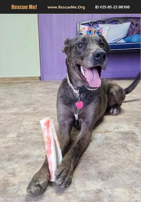 LOCATION: Yukon, OK DOB: 10/16/2023 Meet Myla - a gorgeous 1.5 year old, 73-pound, spayed Great Dane mix. While her appearance is captivating, it's her personality that truly shines. Myla is a bundle of joy with zoomies to spare! She's young, playful, and full of energy-born to run, wrestle, and bounce (she literally loves jumping on the trampoline!). If you've got a playful pup or active kids, she's game for all the fun. And when the excitement turns into fireworks? Myla stays cool, calm, and collected. Loud noises don't faze her a bit- she's an easygoing girl. She's incredibly sweet with the kids - gentle, patient, and happy to snuggles or be silly. She's learning that cuddles are just as good as chaos and settle down to soak up the love. Myla is crate trained, housebroken, and rides great in the car. She's working on her leash manners and, like many playful pups, can be a little mouthy when excited, but she's learning fast with guidance and consistency. She does great with medium to large dogs who can match her energy. Small dogs aren't her thing. Cats are a no. But people? She's all in! She wants to be wherever you are-with those big, expressive eyes always watching and loving you. Myla is looking for a home with someone who sees her for the silly, stunning, loyal girl she is. Someone who'll give her space to play, a couch to crash on, and let her be a part of the family-forever. ========================= To apply to adopt me, please fill out the application form! https://form.jotform.com/51994996709176 . Note: SRGDRR adopts nationwide and offers transport options to help you find your perfect match! Check out our other adoptable dogs at saverockythegreatdane.org/adopt.