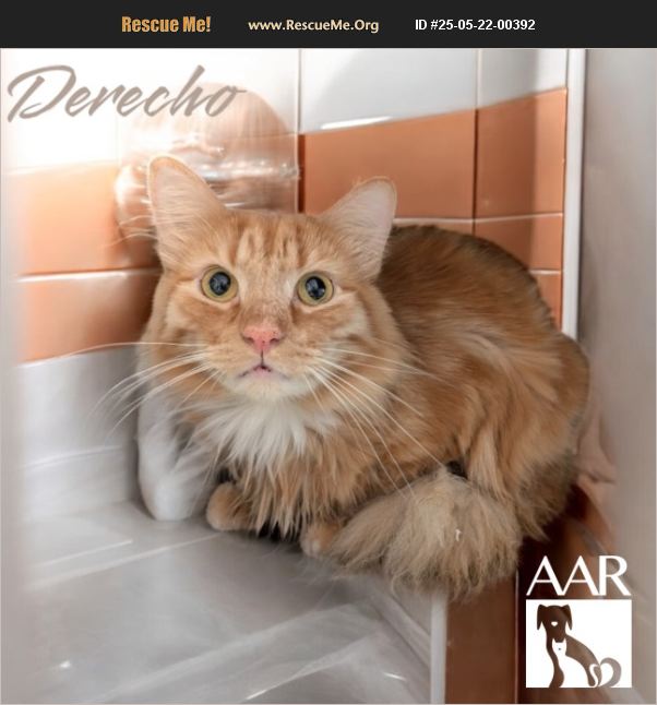 Derecho is a playful, outgoing adult cat who loves being the center of attention. He's full of energy, always ready to chase toys, explore new spots, or soak up all the pets you can give. He gets along with other cats, though he plays rough, so he'd do best with a confident feline friend or as a solo kitty with plenty of human interaction. Derecho can get bored easily, so he's looking for an active family that can keep up with his curious and lively nature. He enjoys being brushed and petted, especially since his fluffy tummy can sometimes get matted and needs a little extra care. He did well around children, and may do well with a cat friendly dog that gives him space.