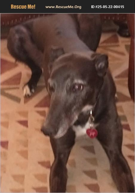 Queenie is a 72 lbs, fun and personable dog. She loves squeaky toys, walks well on a leash, and travels well in the car. Queenie enjoys putting her head on your lap or shoulder, is curious, and likes to be with you. She is dog door and crate trained, and can stay in a crate for 4-6 hours. Queenie is not afraid of the vacuum but avoids the Roomba. She lives with two senior greyhounds and is walked once a day for 10-15 minutes. Queenie is most active before meals and naps after eating. She is learning commands like 'down', 'bed', and 'crate' with the help of training treats. Queenie eats 1.5 cups of kibble with canned food and fish oil twice a day, and loves Greenies teeth chews. She responds well to verbal correction and sleeps in a bed in the primary bedroom, with her favorite bed in the corner. Queenie is a joyful retired racer and a love.