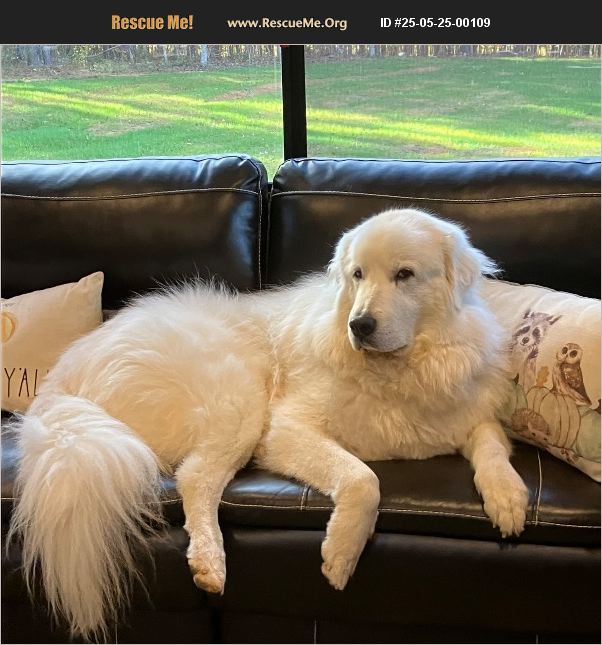 Ivy is a 6 year old 90 lb spayed AKC registered Pyrenees Mountain dog. Excellent LG, needs property and something to guard. Sweet girl who Loves to patrol.