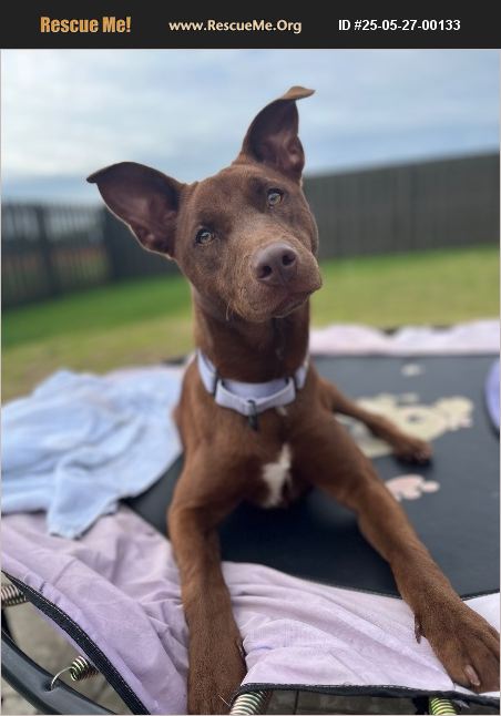 'Susie Rein' was saved from Harris County Shelter on her euth date just in time due to overcrowding. She was marked as a chocolate lab mix but I believe she is Kelpie. I worked with a rescue team to pull her out of the shelter and transport her to Athens, AL will the ultimate goal to find her forever home. She is super sweet with kids, dogs, cats, & adults. She has learned to sit and stay and even wait within a week. She loves to be outside and will be best to live somewhere with plenty of room to run. Kelpies need two hours of exercise a day along with mental stimulation because they are highly active and smart. She is loyal and super soft. She lets me give her baths and pets and lays down beside me. She is desperate for a place where she can work her kelpie roots and would make an excellent member to a family. She does not do well in crates due to her shelter background but she is a quick learner and would potty train easily. I'm working on that with her now. If you're looking to SAVE a life for a dog that would have been killed last week and giving her a second chance this is her. Again, adorably sweet and loving and loyal! Simply needs room to run daily!