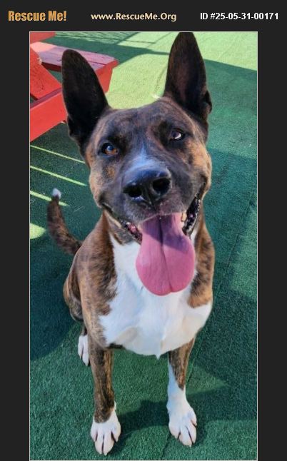 Bautista is a 4-year-old brindle Akita mix who has been at the Redlands Animal Shelter since April 8,2025. He might be a big boy, but his heart is 10x bigger! Bautista knows basic commands such as sit, lay down, 'gentle' when taking treats, and how to return a toy while playing fetch. He is also potty trained and knows how important it is to get in those daily steps, he'll be your best buddy for long walks. Bautista just wants to share his love and join a family.
