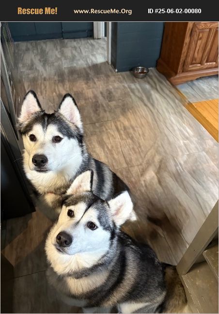 No fault of his own. 2.5 year old purebred Siberian husky looking for new home or even open to fosters. Bonded with his sister who is also on the site and in the picture.