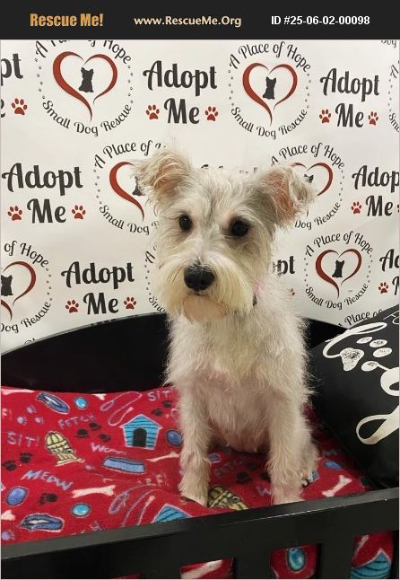 ABI is a beautiful 1 year old, 13.2 pound silver mini Schnauzer with a big personality and lots of potential. She's still learning what it means to be a house pet, but she's already come a long way! ABI started off timid, pacing the house for the first couple of days, but now she's relaxing more and can often be found lounging comfortably or running around the backyard with her buddy, Colt (our beagle pup who is also available for adoption). She's especially vocal during playtime-her sass and spunk shine through when she's having fun! Though she hasn't quite figured out how to jump, ABI gets around just fine with the help of doggy steps. She recently discovered the joys of the big bed and will now join her humans (and dog friends) for a cozy night's sleep. She's also content to snuggle up alone in a dog bed in the living room when she needs a little quiet time. ABI is not quite a lap dog yet, but she enjoys being petted and will let you know, sometimes with a little bark, when she wants some attention. She's doing well with potty pads and the doggie door, though she may still have nighttime accidents as she continues learning. She is still adjusting to her name, isn't leash-trained yet, and would do best in a home with a fenced yard. ABI will thrive in a home with a patient, loving person and a pup playmate who can help her build confidence and continue her journey to becoming a happy, well-adjusted companion. ABI has been to the vet for a wellness check, is up to date on shots, spayed, heartworm negative, has had a 12-month ProHeart heartworm prevention shot, and is microchipped with a lifetime registration. To submit an adoption application please visit our website www.aplaceofhoperescue.com