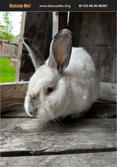Beeb is a large (Californian breed) spayed, litterbox trained companion rabbit who has lived indoors with a bird and a dog. She has a very mellow disposition, but occasionally kicks up her heels for fun. She is food motivated and trainable and likes snuggles. Her owner is going overseas and can't take her with.