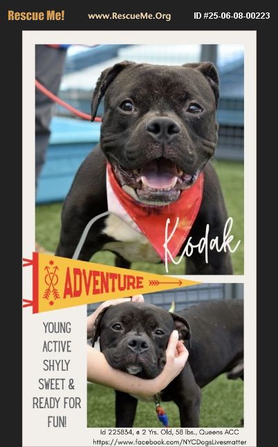 'Kodak ���%A4 I truly could stare into this boys eyes forever. Both times we meet, Kodak isn't feeling so great. He seeks comfort, nestling his big mushy head into our hands and laps. He relaxes into them, letting his weight settle into us, and even for those short moments I hope we are relieving some of his burden - one that no dog should hold on their own or at all. Kodak came from a family. He shared his home with kids and another small dog, who he was said to be friendly with. His guardian said he preferred to meet new people slowly but would acclimate and be friendly as he got comfortable. Kodak lost his home when his family lost theirs, and having lived with them since he was just a puppy, the transition to shelter life has been tough on him. He's ready for a new home to make new memories in, to be loved and cherished once again, and a permanent resting spot for the perfect mushy head. Kodak's ID is #225834 and he is at Queens ACC.: WHAT MY FRIENDS AT ACC SAY ABOUT ME: I would do best in a home with only adult humans (Age 13 and over). I would appreciate slow introductions to new people and places to help me feel safe. I prefer to call the shots and enjoy coming to you when I'm ready for pets. I'm ready to learn! I need a patient person who has the time to work on training with me. Not only do I pull at heart strings, but I also pull on leash! I will need someone to help me with my leash manners. KODAK, ID# 225834, @ 2 Yrs. Old, 58 lbs., Male Queens ACC, Medium Mixed Breed, Black/White Owner Surrender Reason: 4/30/25 - Behavior Assessment Rating: Level 3 or 4 Recommendations: No Children under Age 13 Medical Behavior Rating: