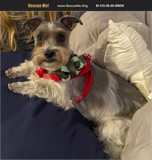 Miniature schnauzer (runt of the liter). Very loving and energetic. Loves to cuddle. 11 years old. Only health issue is an alleged heart murmur. He doesn't display any symptoms of this diagnosis. He loves to play and run around the house and yard. Up to date on vaccinations and well visits.