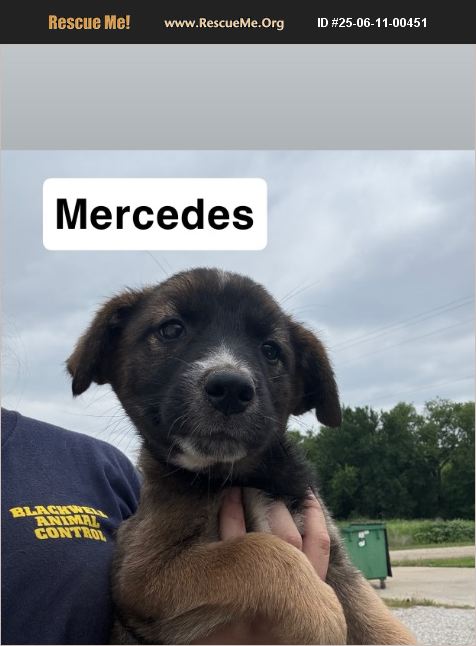 Mercedes is a fun pup that loves to follow you around. She has been in the shelter for a little over a week. She is about 2 to 3 months old.