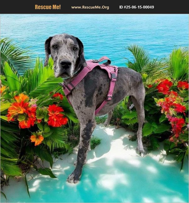 Bethany is a gorgeous Merle Great Dane with a soft heart and a strong spirit. She came to us from a stressful situation, but despite her past, she's holding on to hope and learning what it means to be safe and loved. Bethany thrives with big dog companions and does well in a home with dogs who can gently hold their own-especially around mealtime. She's been known to try to sneak food from more submissive dogs, so a structured feeding routine and a watchful eye will help set everyone up for success. While Bethany is sweet and deeply devoted to her people, she would do best in a home without toddlers. Fast movements and unpredictable energy can make her nervous. What she truly wants is calm, loving companionship-a family who will give her the reassurance and affection she's been craving. This lovely girl has so much love to give. She's ready for a fresh start with people who will see her for the beautiful soul she is. If you have a little extra love and patience to offer, Bethany will be right by your side, forever grateful. Please spread the word to help Bethany find her forever family! Share this post, tag your friends, and let's make sure she finds a family that will play with and give her all the love she deserves. White Kisses requires all dogs to be in training within thirty days of adoption. Training is crucial for dogs to learn lifelong skills and to understand their place in the family pack. It is also essential part of getting to know each other and to help your pup become a well-mannered adult GREAT Dane! For more information about White Kisses adoption process and an application please visit www.whitekissesgreatdanerescue.com/adopt