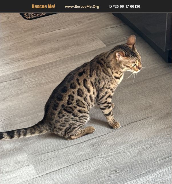 Alex needs a home without other cats. She currently shares a home with another Bengal, and doesn't get along.