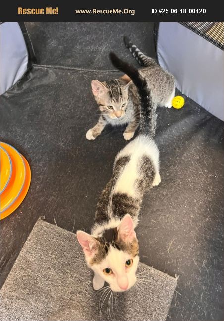 Meet Glenn (striped tabby) and Damien (grey/white)! Double the fun, double the love and double the purrs!! These adorable boys can't sit still for a picture. They are a perfect fun pair who love running through play tunnels, chasing balls and wrestling with each other. They are also content being held and purring up a storm. At twelve weeks old, they are ready to steal your heart and your lap! Fill out an application online to schedule a meet and greet! Up to date on vaccines, microchipped, and neutered.