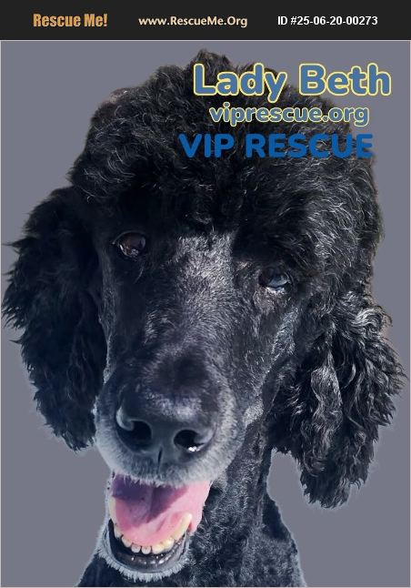 ADOPT LADY BETH / Osteen, FL www.viprescue.org Breed: Standard Poodle Sex: Female Spayed Age: 9 Date of Birth: 01/05/2016 Weight: : Currently 37.8 lbs (Ideal weight: 45+ lbs) Color: Black Good with dogs: Yes Good with Cats: Unknown probably. Good with Kids: Yes Location: Osteen, FL Fenced Yard Preferred Florida residents Only. **About Lady Beth:**�'۬Hello, wonderful families! My name is Lady Beth, and I'm a sweet and gentle soul looking for my forever home. I may be a bit thin at the moment, but with some love, good food, and long walks, I'll get back to my healthy weight.�'۬�'۬ **Personality: *�'۬I'm a friendly girl who loves to ride in the car and is easy on the leash. I enjoy the company of children and get along well with other dogs. I'm curious about cats and can be introduced to them gently. While I might be a bit anxious during thunderstorms, I find comfort in my cozy bed on the floor - I prefer it over the furniture!�'۬�'۬ **Training & Skills:** �'۬I'm crate trained and have mastered basic commands like 'sit' and 'come.' I never jump on people, making me a polite companion. Though I haven't had much socialization, I'm keen to explore and enjoy outdoor dining establishments. �'۬�'۬**Ideal Home:**�'۬I would thrive in a loving home with a family that can offer me good food, plenty of long walks, and a lot of affection. I'd do well with gentle children and a friendly dog to keep me company. If you're patient and willing to help me adjust, I know I'll be a loyal companion!�'۬�'۬ **Diet:** �'۬I am currently healthy and ready for love! I eat a balanced diet and enjoy freeze-dried raw turkey and duck, as well as eggs, cheese, and fish treats. **History** LADY BETH and a dog sibling came to VIP Rescue from a family who did not have room or time to keep them and they were living outside in the heat, rain, and weather. **Health** LADY BETH is spayed, current on vaccinations, heartworm negative, microchipped, and just had a dental. She requires frequent brushing and monthly grooming which costs $100-$200, so please make sure that is in your budget if you want to adopt her. Preference will be given to those adopters with Standard Poodle experience. **ADOPTING LADY BETH' LADY BETH is fostered in OSTEEN, FL. You must travel to OSTEEN to meet LADY BETH and bring any other pets and residents you have for the meeting. If you would like more information on LADY BETH, or to be considered for adoption, you must complete an adoption application at www.viprescue.org. Our volunteer will contact you once your application is approved. We are unable to respond to your emails and messages without you first completing an adoption application. **ADOPTION REQUIREMENTS** You must be a Florida resident and a homeowner, be at least 25 years of age to adopt. To qualify for adoption, all of the pets in your home must be spayed or neutered, be current on all vaccines, preventatives, and have received consistent veterinary care. If you want more info or would like to meet LADY BETH, please complete an adoption application at www.viprescue.org. All of us at VIP Rescue are Volunteers, with families, jobs and pets of our own, so please be kind and patient. We select the most fitting application for the dog, not necessarily the timeliest adoption application. Please make sure to read the entire bio on the pet you're interested in before applying to adopt to make sure you meet the pets needs. VIP Rescue Inc. Is a registered 501c3 non-profit corporation in the state of Florida. Thank you for thinking rescue! www.viprescue.org LADY BETH Adoption Donation: $250