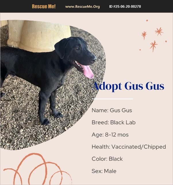 Handsome fellow with big paws. He is a typical lab personality. He is 8-12 months. He is a nice dog. Please contact the shelter for more information. Currently the adoption fees are sponsored.