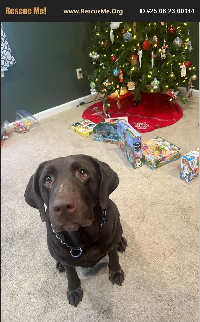 Adult female chocolate lab who is great with Kids and Adults. Cannot be in a home with another dog. House trained sweet dog