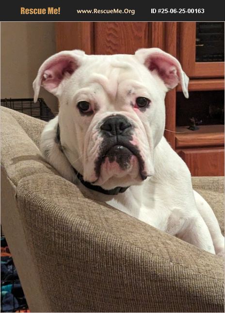 Doggo is a good boy. He is white with some black spots. Very happy boy. Likes to be outside. Likes playing with sturdy toys. Loves giving kisses.
