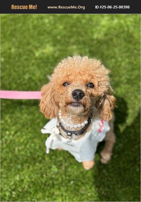 Freya is a sweet, cuddly girl with a lot of love to give. She is a loyal Velcro dog and would like nothing more than to hang out with you all day�'�|she would definitely prefer a forever human who works from home or who is retired. Freya can have a little separation anxiety when left alone and will chew up a slipper here n there, so we definitely encourage crate training Freya. Little girl has had a few accidents in the house (peeing) but does the rest of her business outside. However, she can easily be trained because she listens well and is food motivated! Freya gets along with other dogs and would likely be fine with cats as well. She walks nicely on leash, and is a very quiet pup, able to acclimate easily. Freya is very trusting and curious, and when she's excited, she does a little tippy tappy dance. Are you ready for this snuggly apricot poodle girl to dance into your heart?