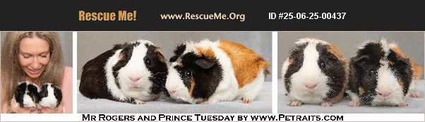 Mr Rogers and Prince Tuesday are eight-month-old brother guinea pigs looking for a loving guardian together. These boys came to Friends of Petraits Rescue when a guy came home from college with his pets, and his folks said no. Mr Rogers and Prince Tuesday have nice temperaments and get along beautifully. They are fast and wiggly. They eat unlimited timothy, orchard and botanical hays, share two cups of fresh salad each day and a 1/4 cup of pellets. Guinea pigs need daily vitamin C which they get from fresh pellets, a 1-inch square of red pepper, dark leafy greens, and vitamin C cookie. Please read up on guinea pig care and diet before adopting by visiting this excellent website http://www.guinealynx.info/ They would love a home with people who will handle them daily, keep them well-fed, nails trimmed, and keep their habitat nice and clean. If you're interested in meeting and possibly adopting Mr Rogers and Prince Tuesday, please fill out the adoption application at https://friendsofpetraits.com/guinea-pig-adoption-application/ and follow up to make an appointment by contacting [email protected] Their adoption fee of $50 as a pair benefits the Friends of Petraits Rescue Group. For an additional $50, you can purchase their large guinea pig cage and supplies. They are being fostered in Chicago's Andersonville neighborhood.
