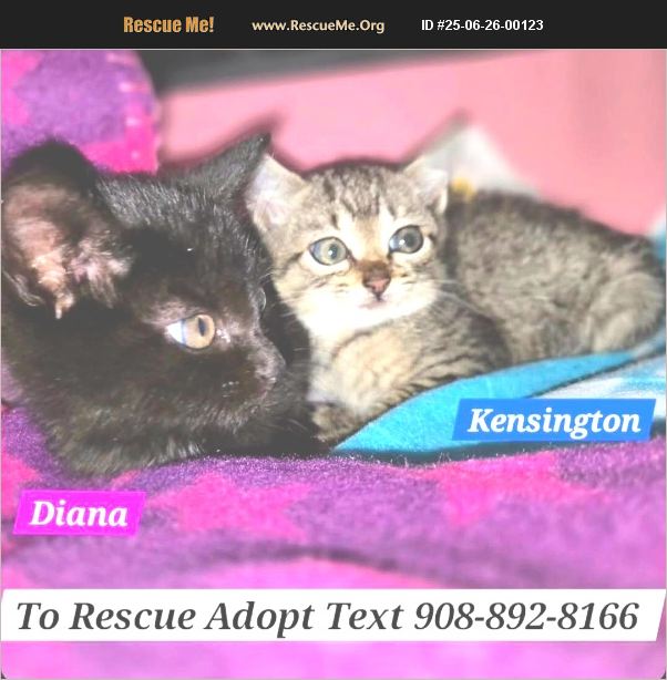 URGENT! Save Diana & Kensington! These tiny rescue kittens are Brother & Sister. Diana is Female, and Kensington is Male. To Rescue Adopt please Text Message 908-892-8166