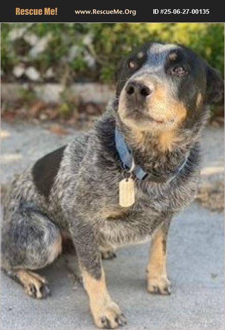 Purebred Australian Queensland Heeler Cattle Dog, male, blue with black face mask. I am Shirley Temple's brother. I'm in desperate need of a home since my parents divorced and my dad is not physically capable of taking care of me. A home with children and/or other pets is fine. I'm 11 years young, I'm in good health, neutered, love attention, and really need a new home. ��%BD��%BD%BD��%BD��%BD%8F The situation with my dad is now worse - he was hit by a car when on his scooter!