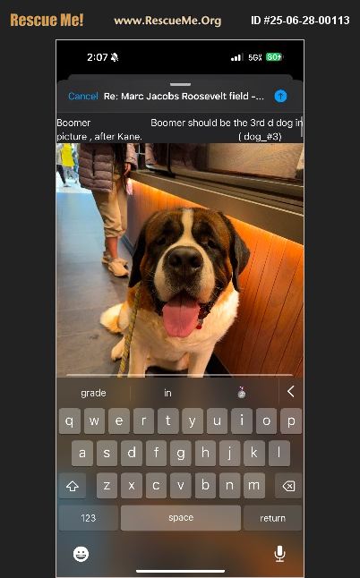 He is also good with kids but only with women adults . He's loving, but he's afraid of Liz noises: buses . Construction , sirens , any lid sudden noise. Also sudden movements or noises . Makes him react nervous.has to be kept away from other dogs. At least 20 fly away, cannot let him go to dog parks or near any other dog, he's super reactive. He's very strong and very fast runner ! Needs a fenced in yard .walk in opposite side of street if see another dog, or cross he street immediately. I recommend getting him a collar use vibration Kods, bever a shock collar , never a shock collar mode !, u need to rotate an expose to oppose side of neck every two hours or will burn his neck with boo boos. He needs a lot of rubbing and hugs and love . He needs a lot of belly rubs he likes to place his front paw on your arm to get hi 5 amd rub his paw pads and inbwteen his paw stores . He liens to lean on you when you walk down the stairs or sitting down to get loved on and hugs and eu s. He loves babies . And will go over if he hears babies cry or sees a baby stroller . Cannot be near cats either !u need to charge an ecoae every night/ not a shock collar. And never use a prong collar on him . You must agree never to abandon him to a shelter , never to drop him off to a shelter or vet to be euthanized or killed .shelters will say no kill- but they will! So it has to be agreed on and promised!, you reach out to this nj St. Bernard rescue again for any issues!, I don't want him killed or euthanized . You can have him professionally trained with u at wait means sit nj. Borden town or old bridge / they offer free weekend Saturday lessons unlimited once you finish training . They show u how to keep trining with the dog after and during treatment . And a feee consultation. The footing fee is slightly adjusters