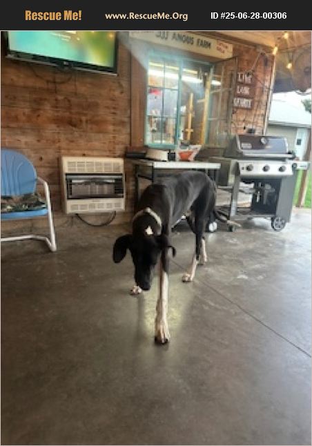 2-3 yr old male Great Dane that showed up 3weeks ago at my house. I can't keep him already have three dogs. Has a very gentle disposition, is not aggressive toward people, dogs, cats or chickens.