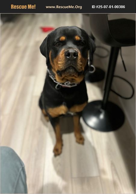 3 year old pure bred Rottweiler. Listens to commands and is house trained. She is good with Adults and kids, she may have too much energy for smaller kids, but with additional training she'll do good. She's easy to train and loves belly rubs. If I do not find a new home for her soon, she'll likely have to go to a shelter and I would hate that for her. I'm flexible on the Adoption Fee.