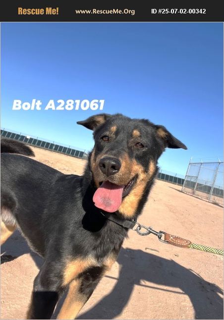 Meet Bolt (A281061), a 2-year-old mix (maybe kelpie/shepherd weighing 54 pounds. True to his name, Bolt is full of life and occasionally gets bursts of playful energy that result in joyful zoomies. Despite his lively spirit, he's also a sweet love bug who enjoys neck scratches and soaking up attention. Bolt is a social, curious boy who walks well on a leash and participates as a public walker at the shelter. He knows commands like sit and down, and while he's still relatively new to PCACC, staff have already fallen for his charming personality. We recommend a meet and greet with any resident dogs to help ensure a great match. If you'd like to meet Bolt, please call 520-509-3555, email [email protected], or visit him at 1150 S. Eleven Mile Corner Rd, Casa Grande, AZ 85194.