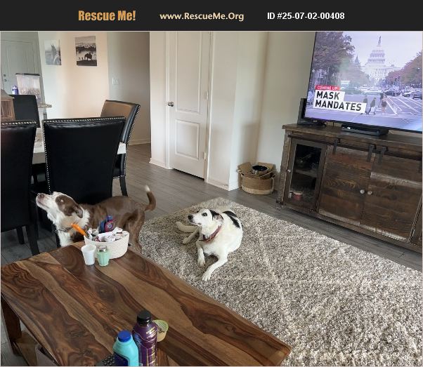 Female red and white border collie 14 years Male tri border collie 12 y/o son of female-is deaf but understands signing Dogs need to be rehomed together. We need to get these dogs rehomed within the next two weeks due to my husband's deteriorating health. They are very sweet and love people. Beau loves to sleep on the bed with us and Dolly lays beside the bed. They are addicted to milkboned