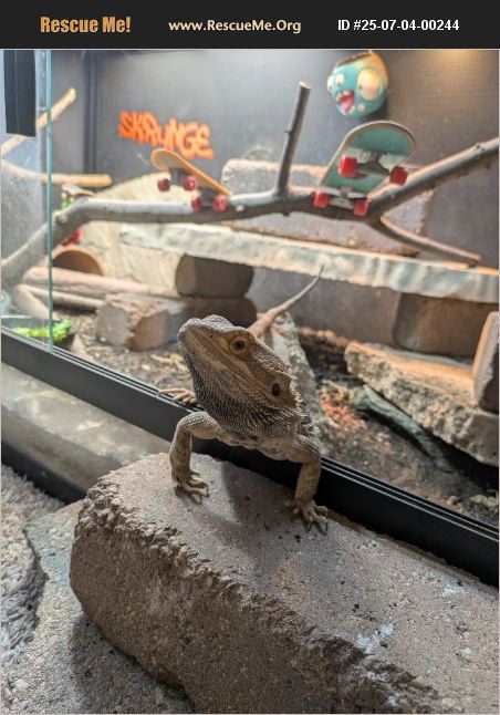 1.5 year old healthy bearded dragon. he will come with everything i have for him. Rehoming mainly because i really really dislike feeding and handling the bugs he eats. If you have questions id prefer to communicate via email or text. thank you