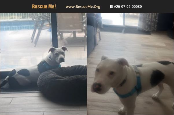 A beautiful pitbull mix with white coat and black spots. Great with kids and other dogs.