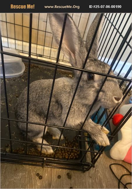 Hes a gray and white bunny .. he is a lil slim with me having trouble to feed him .. hes not an aggressive animal sometimes a lil hesitant