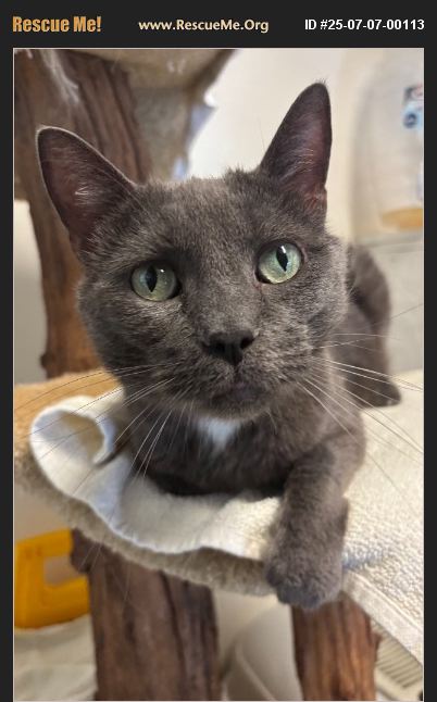 Venus is a handsome boy, he's grey with a patch of white on his chest, his eyes are a beautiful green. He'd be a wonderful addition to any family