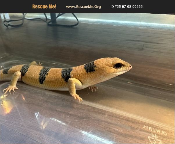 Unknown sex Peters Banded Skink named Pringle is looking for a new home! They came to us as having eye issues and not eating regularly. Everything is sorted out now and they are healthy as ever! Age is around 6 years old. Proof of proper tank and lights required. We do not ship reptiles!