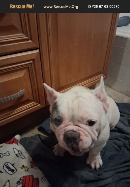 Female French Bulldog with some hearing loss and allergies. Great with other animals and humans. Looking for a good home, preferably with someone who works from home or a retired couple.